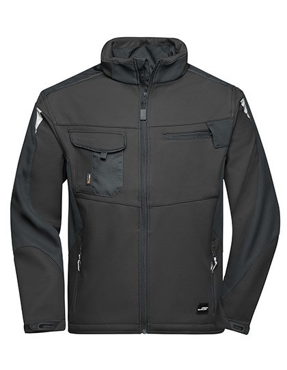 Robuust, duurzaam softshell materiaal | Wind- en waterafstotend (2.000 mm waterkolom) | Luchtdoorlatend en waterdampdoorlatend (2.000 g/m²/24 uur) | Opstaande kraag | Met Cordura® versterkte schouderzone | Afgedekte ritssluiting over de gehele lengte met windbescherming | Zij- en borstzakken met ritssluiting | Borstzak met klep, binnenzakken | Reflecterende elementen (zonder beschermende functie/geen PBM) op het arm- en ruggedeelte