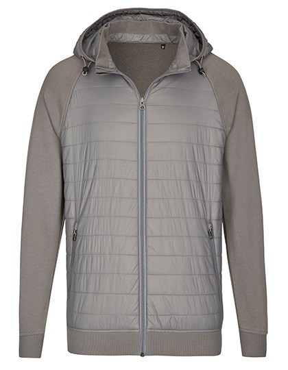 Gewatteerd hybride jack | Klassieke snit | Drielaags sweatshirtmateriaal aan de mouwen en achterkant, zacht geborstelde binnenkant, met een 100% katoenen oppervlak | YKK-ritssluiting van nylon | Zijzakken met YKK-ritssluiting | Afneembare capuchon | 2x1 geribde manchetten en tailleband | Verwijderbaar “miners mate”-label | Neutraal maatlabel in tailleband, opzij geplaatst | Voorgekrompen en met enzymen gewassen