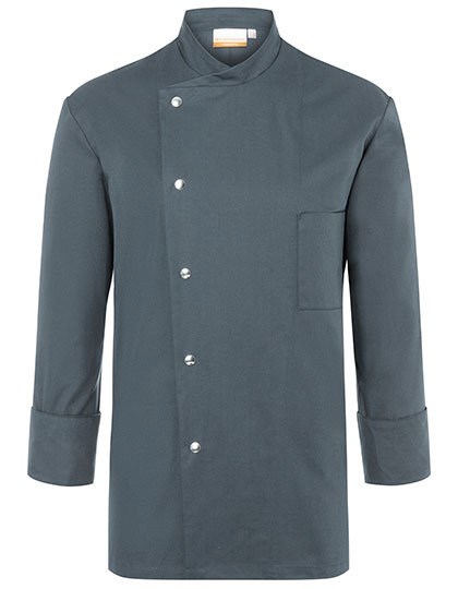 Keperbinding, 215 g/m² | Zeer verfijnd, voorgekrompen, kleurvast, onderhoudsvriendelijk | Koksbuis voor mannen met normale snit | Prinsessenzoom op het achterste deel | Geventileerde manchetten | Schuine borstzak links, met pennenzak | Jas met 5 knopen en drukknopen | Geschikt voor industrieel wassen | Wasbaar tot 95 °C