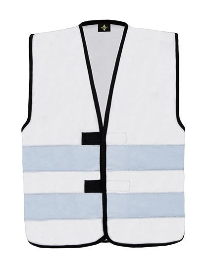 Zoomnaadbinding met zwart polyester | Geschikt voor kleursublimatie | Twee reflecterende banden van 5 cm breed rondom het lichaam | In maat verstelbaar door twee klittenbandsluitingen | Bij het dragen over een jas, gelieve een of twee maten groter te bestellen | Gecertificeerd volgens EN 17353:2020 Type B3 | Voorzien van EAN-barcode | Afzonderlijk verpakt in polyethyleenzakken | De fabrikant garandeert de reflecterende eigenschappen conform EN-standaard voor 25 wasbeurten tot 40 °C | Kleurverschillen zijn mogelijk. Een uniforme levering kan niet worden gegarandeerd. Variaties in het design vormen geen gebrek. | Dit is een artikel over persoonlijke beschermingsmiddelen (PBM's). Volgens EU-verordening 2016/425 over persoonlijke beschermingsmiddelen is een EU-conformiteitsverklaring van de fabrikant verplicht. De conformiteitsverklaring is beschikbaar op www.korntex.com
