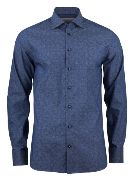 Een nieuw, subtiel maar uitgesproken indigo gekleurd paisley-patroon shirt. Draag het chic en opvallend met een stropdas, of juist casual met een pantalon—hoe dan ook blijf je de hele dag comfortabel en verzorgd dankzij onze bekende strijkvrije en natuurlijke stretchkwaliteit. Innovatie en stijl gaan hier hand in hand! Regular Fit.