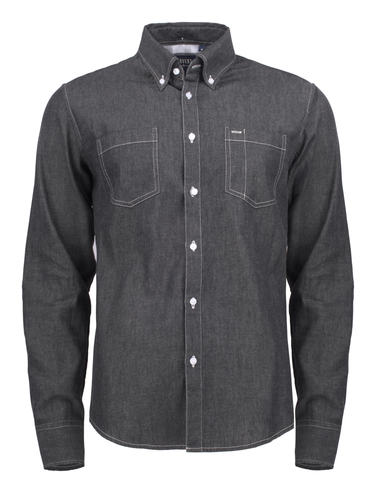 Denim look overhemd. Buttondown kraag, linker- en rechterborstzak en aanpasbare mouwen. Geruit patroon aan de binnenzijde van het rugpand en de manchetten. Afgeronde zoom.