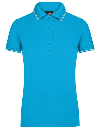 Polo in elastische piqué stof | Gekamde ringgesponnen katoen | Gebreide polokraag en mouwbanden met contrasterende strepen | Contrasterende zijsplitten | 5 knopen | Getailleerde pasvorm