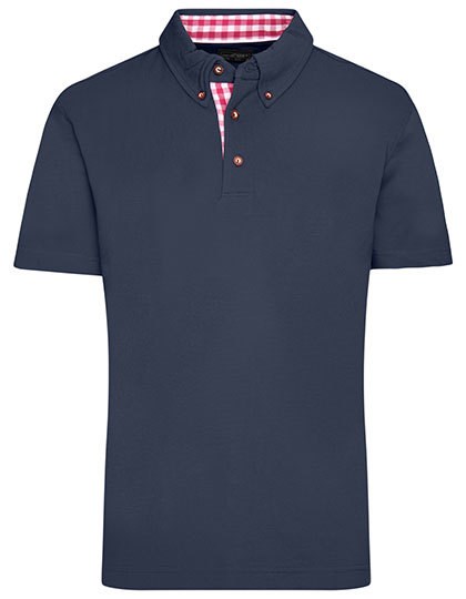 Klassieke polo met traditionele kostuumlook | Uitstekende kwaliteit piquéstof | Gekamde ringgesponnen katoen | Geruite trim op kraagstand, aan de binnenkant van de knoopsluiting en zijsplitten | Knoppen van imitatiehoorn | Halve maan in bijpassende kleur | Kant-en-klare kraag met knopen | 3 knopen