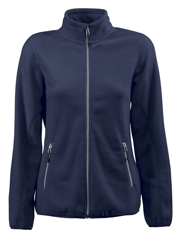 Geborstelde fleecejas met lange ritssluiting voor dames en heren. Geborsteld aan beide zijden. Twee voorzakken, contrasterende ritssluitingen en decoratieve stiksels op de mouwen. Elastische tape aan de boord onderaan en de manchetten.