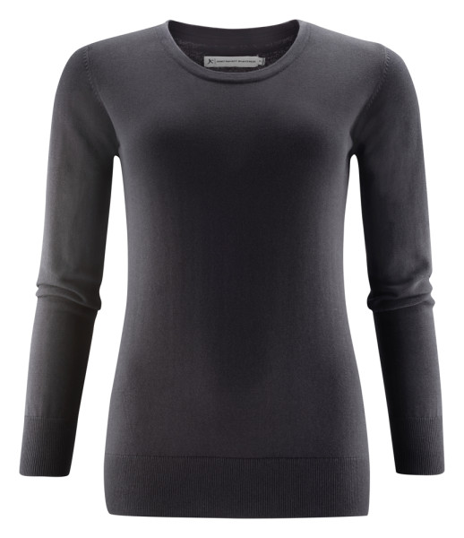 Gebreide sweater met ronde hals. 1x1 rib aan de halsuitsnijding, aan de zoom en aan de manchetten. Dubbelgevouwen, zachte rand aan de kraag.