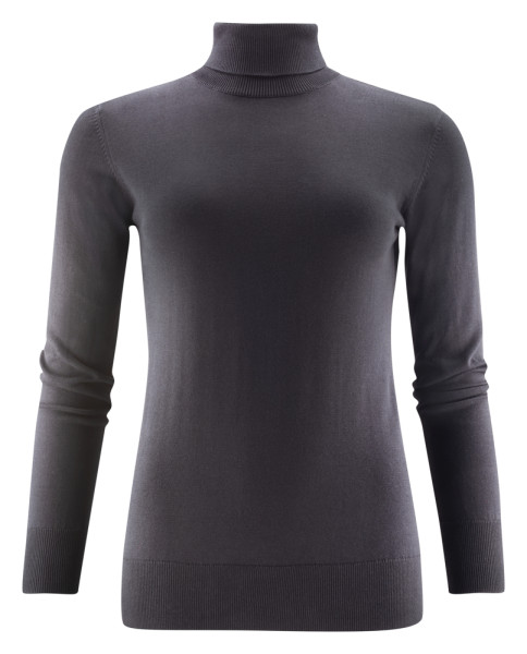 Gebreide sweater met rolkraag. 1x1 rib aan de zoom, manchetten en rolkraag.