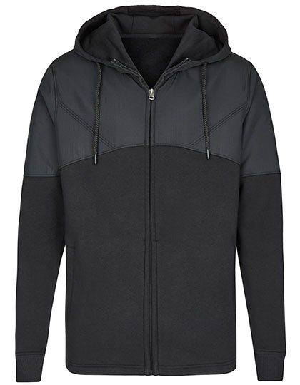 Hoodie met rits gemaakt van verschillende materialen | Klassieke snit | Drielaags sweatshirtmateriaal, zacht geborstelde binnenkant, met een 100% katoenen oppervlak | YKK-ritssluiting van nylon | Zijzakken met YKK-ritssluiting | Capuchon | 2x1 geribde manchetten | Verwijderbaar “miners mate”-label | Neutraal maatlabel in tailleband, opzij geplaatst | Voorgekrompen en met enzymen gewassen