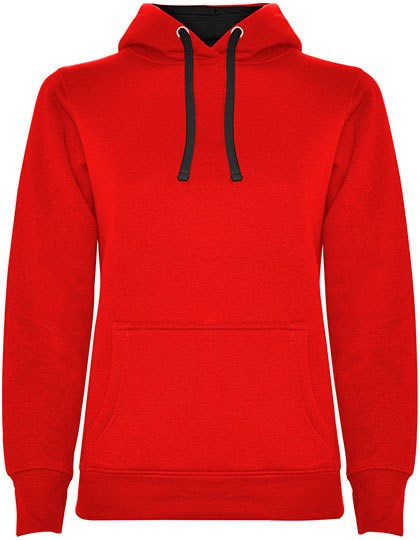 Geborsteld fleece voering | Getailleerd | Capuchon aan binnenzijde (enkele jersey), trekkoord en metalen oogjes in contrasterende kleur | Nekband met visgraatpatroon | Kangeroezak | Manchetten en zoom met 1x1 ribgebreid en elastaan | Manchetten met duimopening | Afscheurbaar etiket