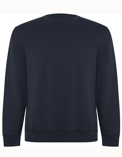 Uniseks sweatshirt | Biologisch katoen / gerecycleerd polyester | Kraag, manchetten en tailleband 2x1 geribd breiwerk | Overlockzoom op schouder, armopening, hals, manchetten en taille | Halvemaanvormige halslijn | Afscheurbaar etiket