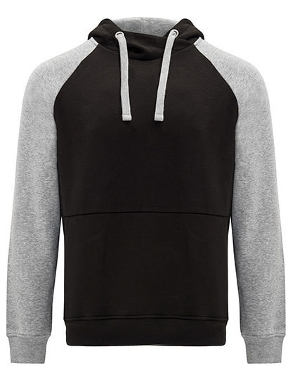 Tweekleurig uniseks sweatshirt | Kap met gekruiste kraag en metalen ogen | Kap met single-jerseyvoering | Trekkoord en raglanmouwen in contrasterende kleur | Kangeroezak | 1x1 geribbeld gebreid materiaal met elastaan en zoom | Geborsteld fleece voering | Afscheurbaar etiket