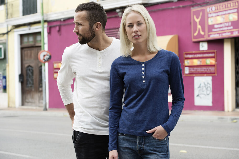 Eigentijds T-shirt met lange mouwen en knoopsluiting voor een unieke uitstraling. Het T-shirt is gemaakt van hoogwaardig garen voor een optimaal draagcomfort en een fraai onderscheidend vermogen. De behandelingen met softener en enzymen zorgen ervoor dat het T-shirt zacht en glad aanvoelt.