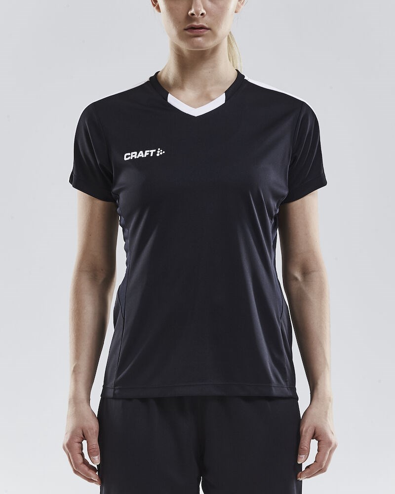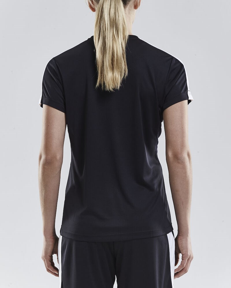 Match jersey made of stretchy and functional fabric offering superior moisture transport for maximum performance. Mesh panels in the armpits provide efficient body-temperature management while great elasticity and ergonomic design ensure comfortable fit and optimal freedom of movement. Female fit. Comes with a V neck that matches the contrasting side stripes.