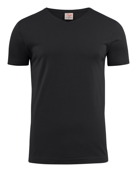 Moderne, aansluitende V-hals T-shirt met versterkte schoudernaden en dubbelgestikte halsopening. Elastaan in boord. Geribde nek in vier lagen. Oeko-Tex 100 gecertificeerd.