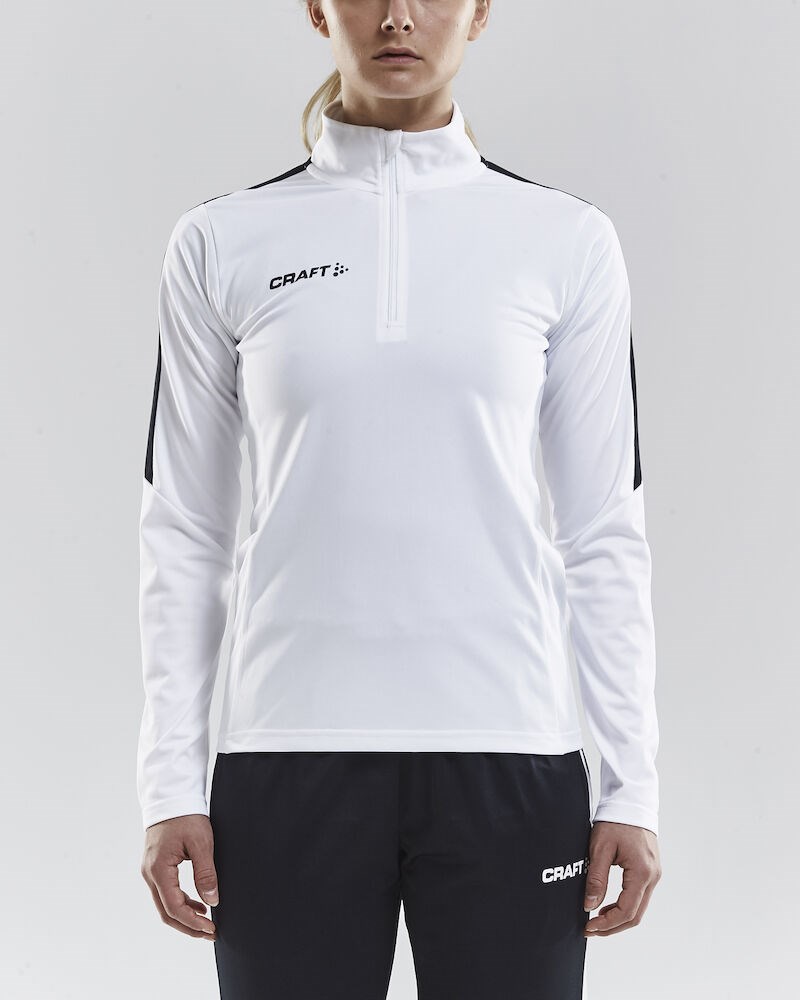Soft and comfortable training and warm-up jersey made of functional fabric for optimal moisture transport. Short zipper enables quick and easy ventilation adjustment. Female fit.