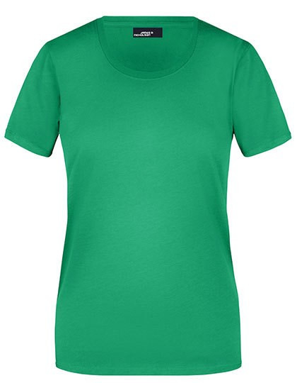 Licht getailleerd T-shirt | Single jersey | Gekamde ringgesponnen katoen | Ronde hals met elastaan | Halsboord | Zijnaad | Dubbeldraads stiksels op schouders en halslijn