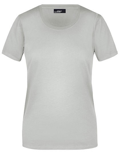 Licht getailleerd T-shirt | Single jersey | Gekamde ringgesponnen katoen | Ronde hals met elastaan | Halsboord | Zijnaad | Dubbeldraads stiksels op schouders en halslijn