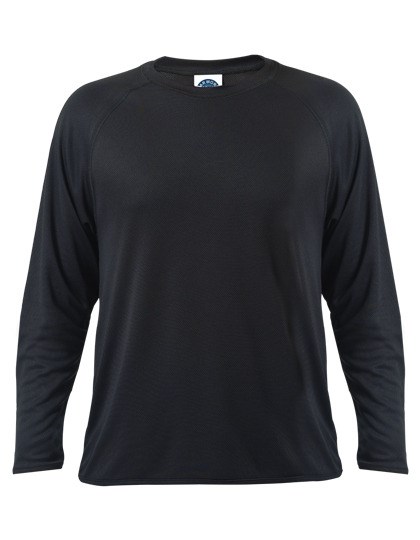 Textuurpolyester | Ultra tech vochtafvoerende werking | Ronde halsuitsnijding | Versterkte halsboord | Raglanmouwen met platte naden | Voorgevormde doorgezakte zoom achteraan | Zijnaden | Binding van dezelfde stof op manchetten en zoom
