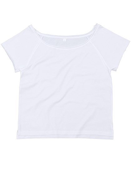 Biologische of in omschakeling naar biologische katoen | Losse pasvorm | Ruwe boord aan de hals | Brede, off-shoulder halslijn | Korte, onbewerkte mouwen | Raglanmouwen | Zijsplitten op zoom | Afscheurlabel