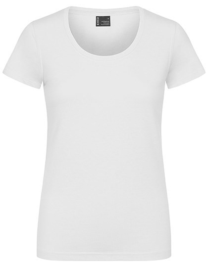 Gemengde materialen | Single jersey | Zijnaden | Lus in de zijnaad aan de binnenkant | Vrouwelijke halslijn | Smalle geribde manchetten met elastaan | Langvezelig katoen en polyester met VORTEX®-spintechnologie | Zeer glad oppervlak | Niet-pluizend | Versterkte schoudernaden en dubbele naden | Halsboord | Minimale krimp | Minimaal strijken | Standaard: ISO 15797 (industriële was- en afwerkingsprocedures)