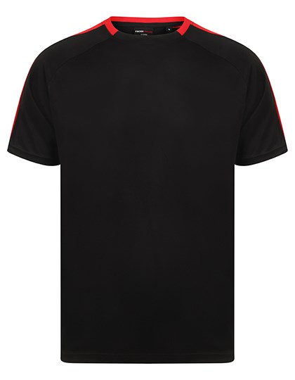 Single jersey | Uniseks | Contrasterende mouwpanelen in dezelfde stof | Sportieve pasvorm | Ademende finish zorgt voor vochtafvoer | Sneldrogend en ademend | Tweedelige kraag van dezelfde stof | Raglan schouder | Afscheurbaar etiket