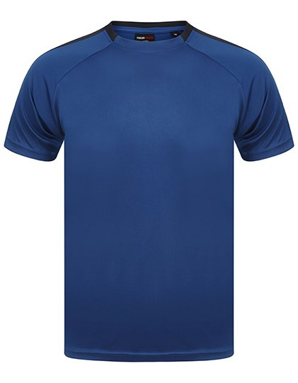 Single jersey | Uniseks | Contrasterende mouwpanelen in dezelfde stof | Sportieve pasvorm | Ademende finish zorgt voor vochtafvoer | Sneldrogend en ademend | Tweedelige kraag van dezelfde stof | Raglan schouder | Afscheurbaar etiket