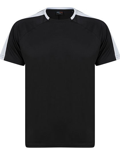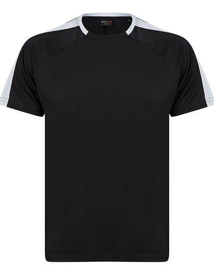Single jersey | Uniseks | Contrasterende mouwpanelen in dezelfde stof | Sportieve pasvorm | Ademende finish zorgt voor vochtafvoer | Sneldrogend en ademend | Tweedelige kraag van dezelfde stof | Raglan schouder | Afscheurbaar etiket