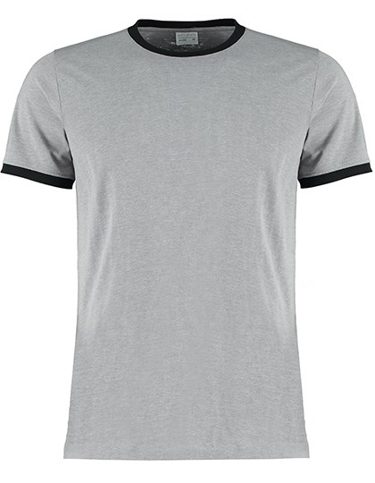 Ringspun, gekamd katoen | 1x1 geribbelde gevouwen nek en manchet in contrastkleur | Zelfgekleurde nek en schouderband in dezelfde stof | Zijnaden | Tweelingnaaldzoom | Kustom Kit® afscheurbaar label