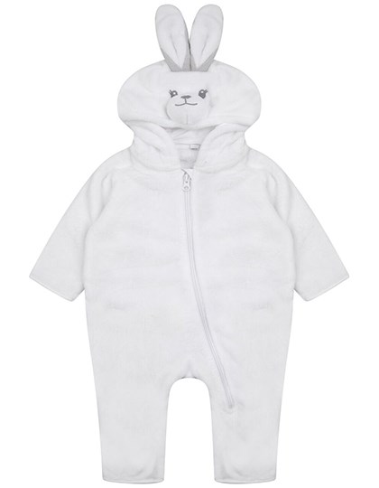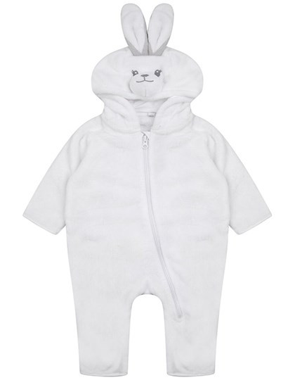 Polyester pluche | Alles in een capuchon van superzachte pluche met konijnenoren, ogen en neus gedetailleerd op capuchon | YKK rits middenvoor en onderbeen | Staartdetail op achterkant | Binding aan mouw- en beenzomen | Alleen maatlus