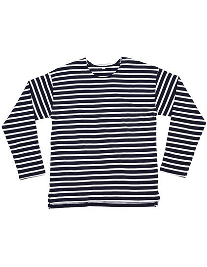 Biologische of in omschakeling naar biologische katoen | Uniseks | Verlaagde schouder | Geverfde strepen van 0,8 en 1,6 cm | Zijsplitten | Verlengde achterkant | Zachte en elastische stof | Afscheurlabel