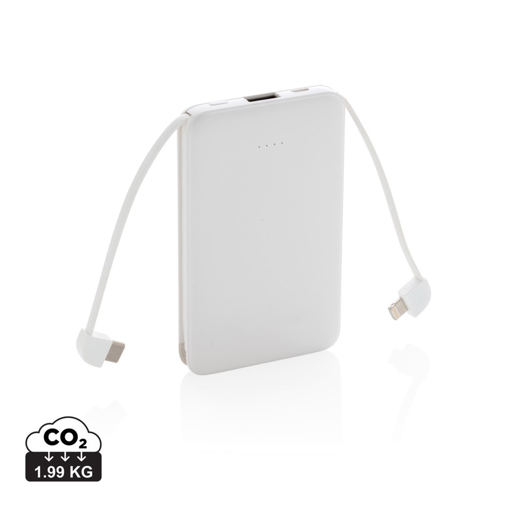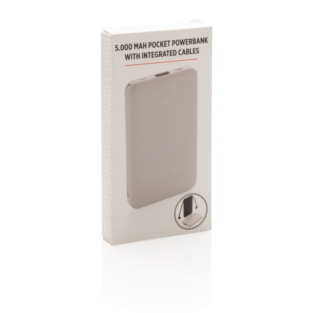 5.000 mAh zakformaat powerbank met geïntegreerde kabels